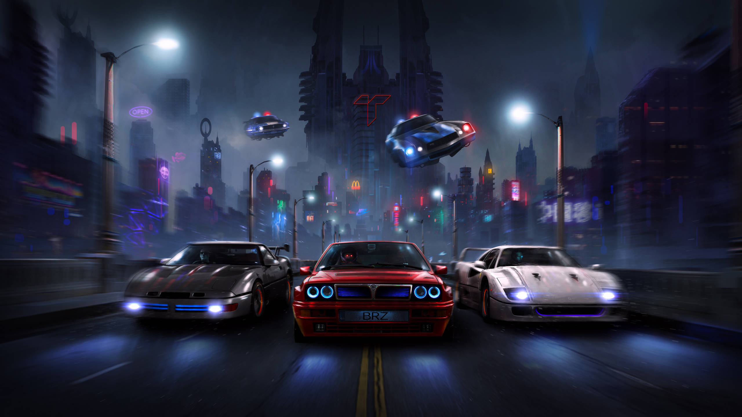 2560 X 1440 Cars Night Chase Wallpaper