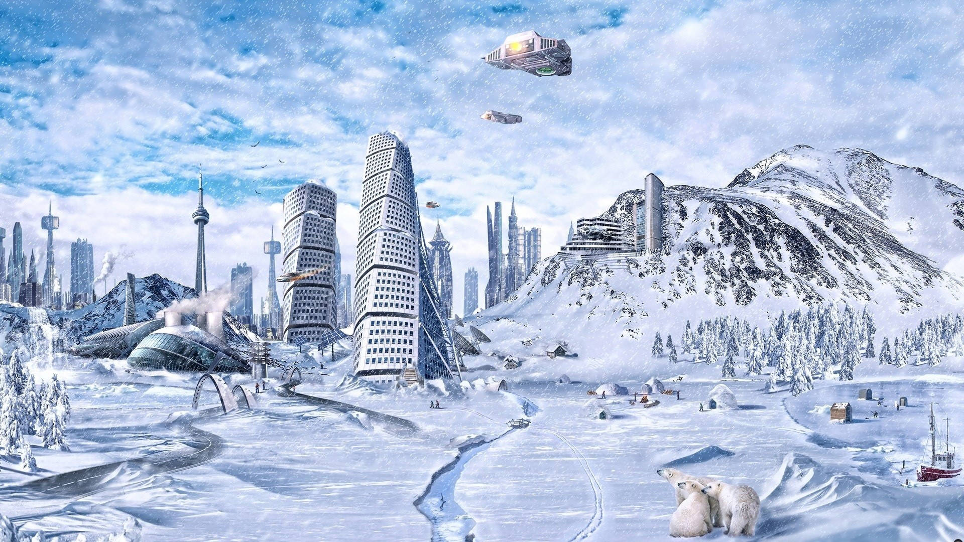 3d Desktop Snowy City Wallpaper
