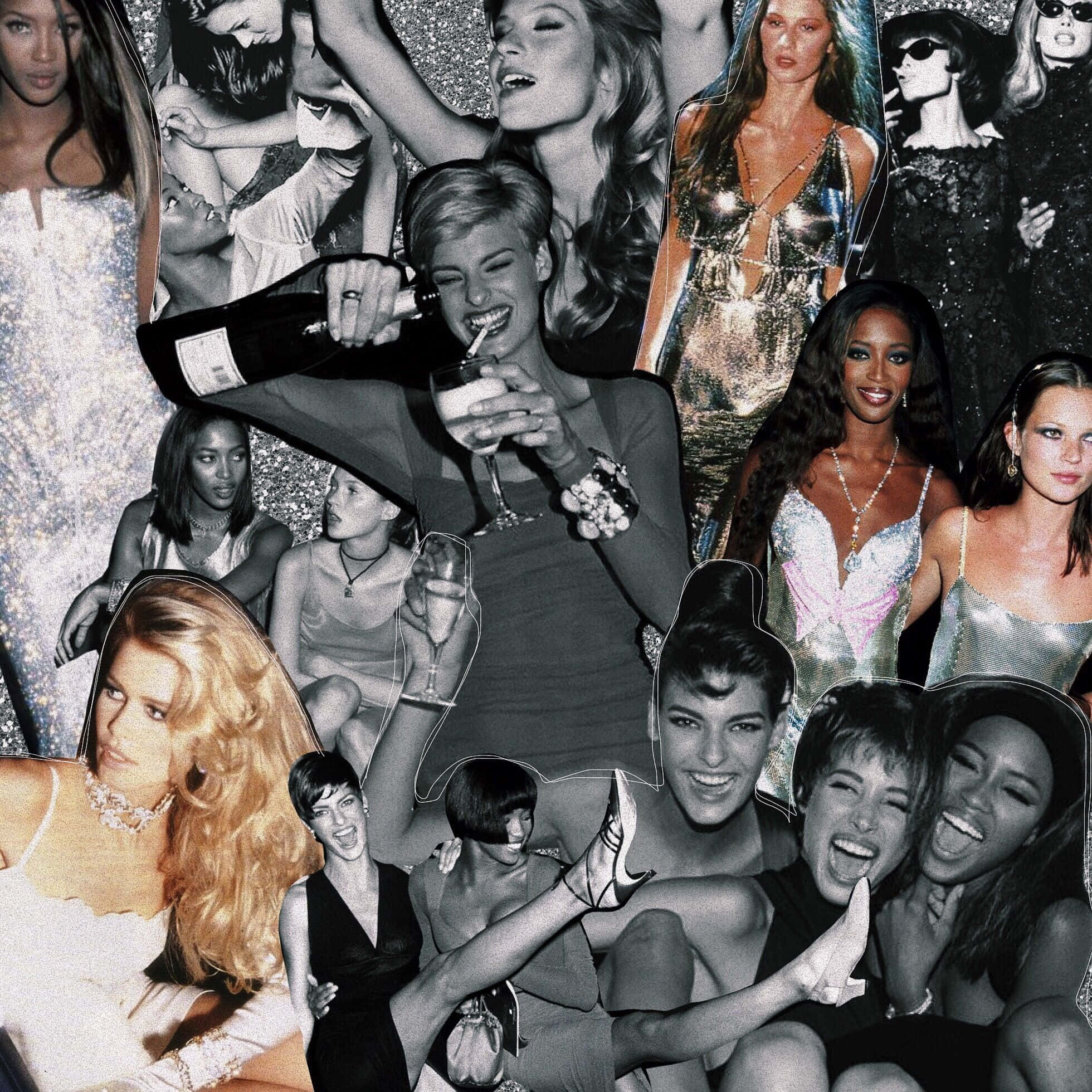 90s Style Women Photo Collage Wallpaper