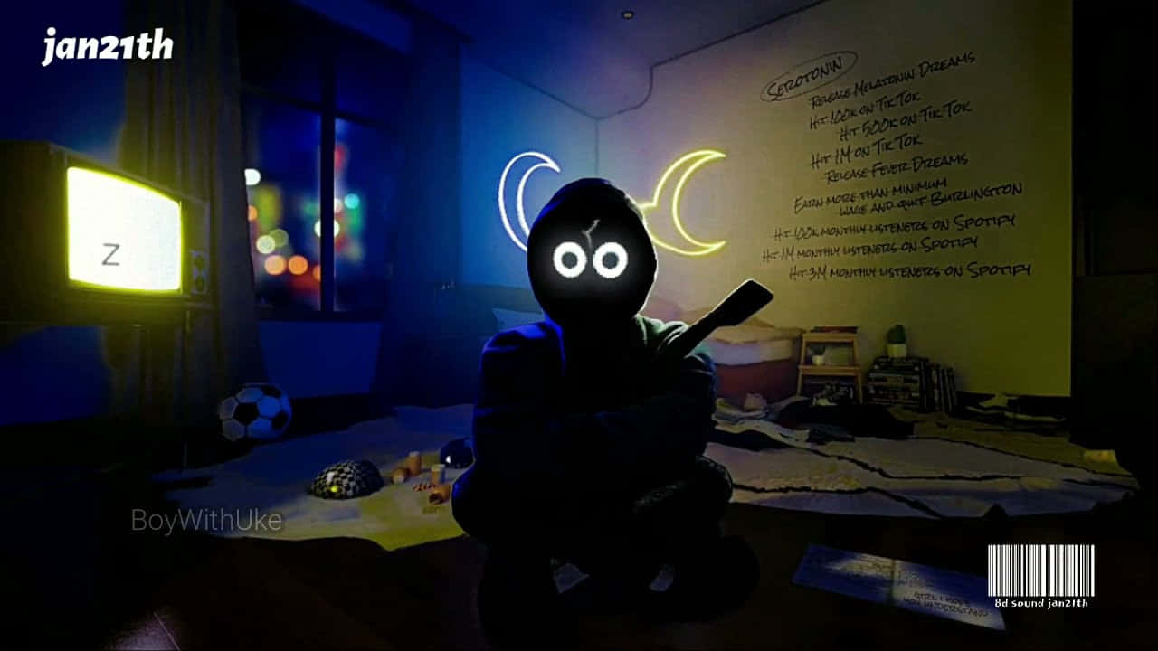 A Adorable Little Boy Strumming His Ukulele Wallpaper