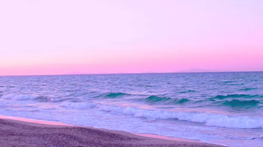 A Beach With Waves And A Pink Sunset Wallpaper