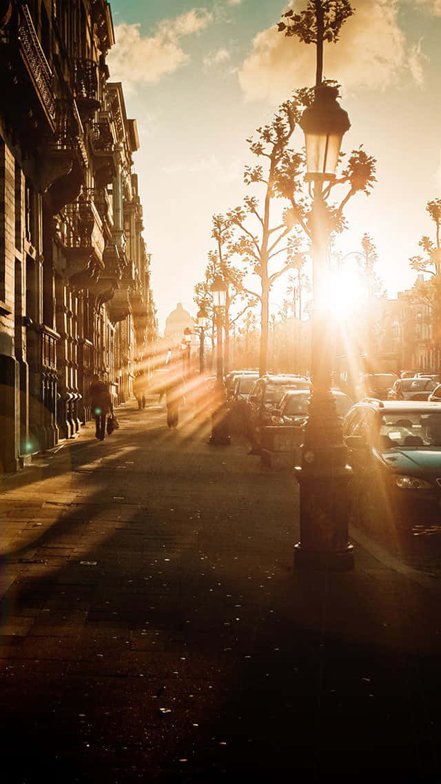 “a Beautiful City Skyline At Sunset Illuminated By The Iphone Camera.” Wallpaper