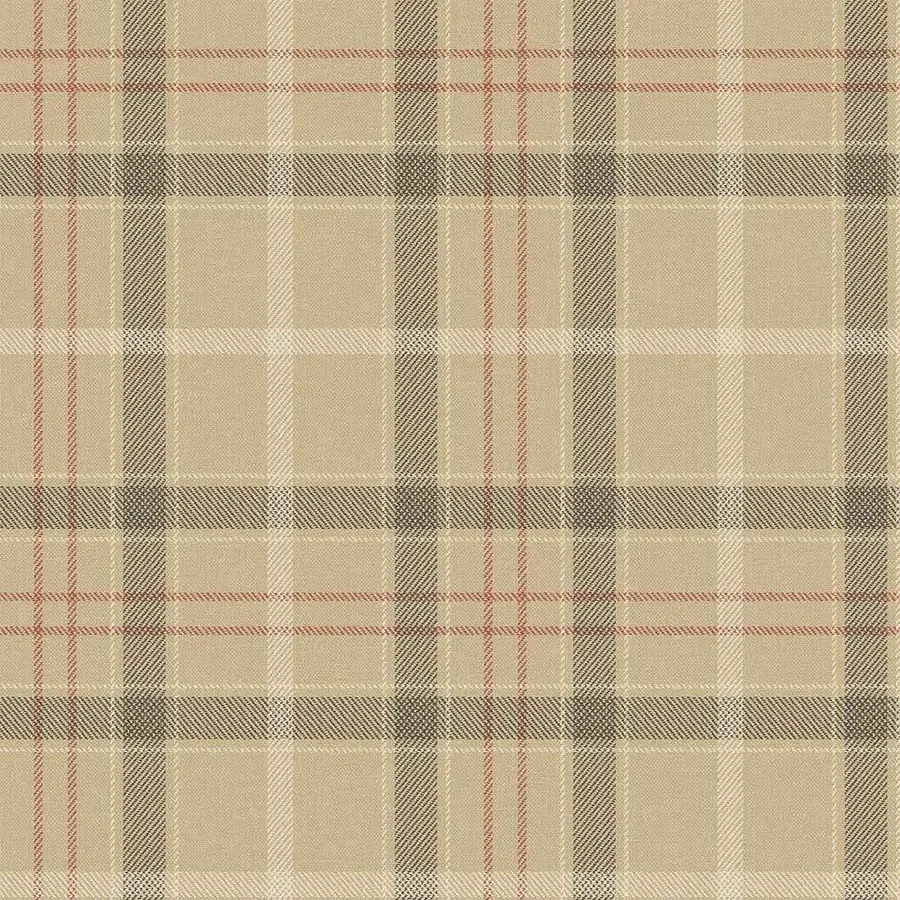 A Beige And Red Plaid Fabric Wallpaper