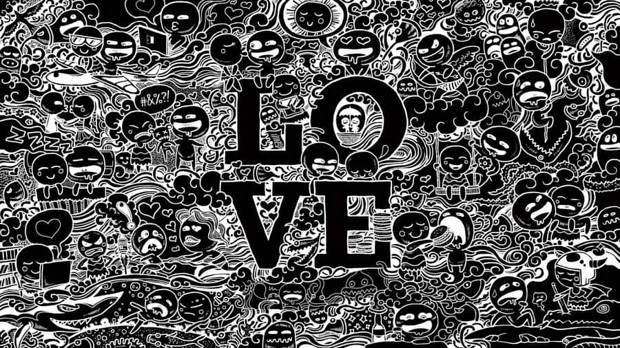 A Black And White Drawing Of A Love Scene Wallpaper