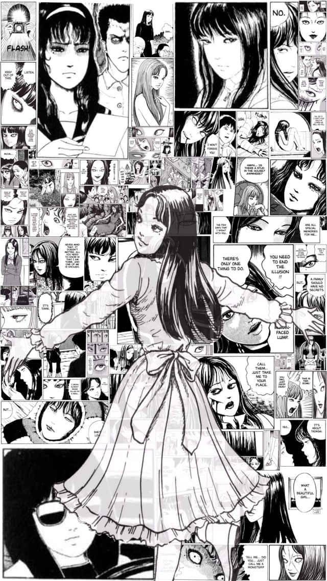 A Black And White Image Of A Girl In A Dress Wallpaper