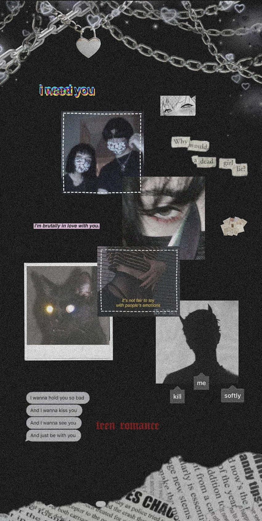 A Black And White Photo Of A Cat And A Chain Wallpaper