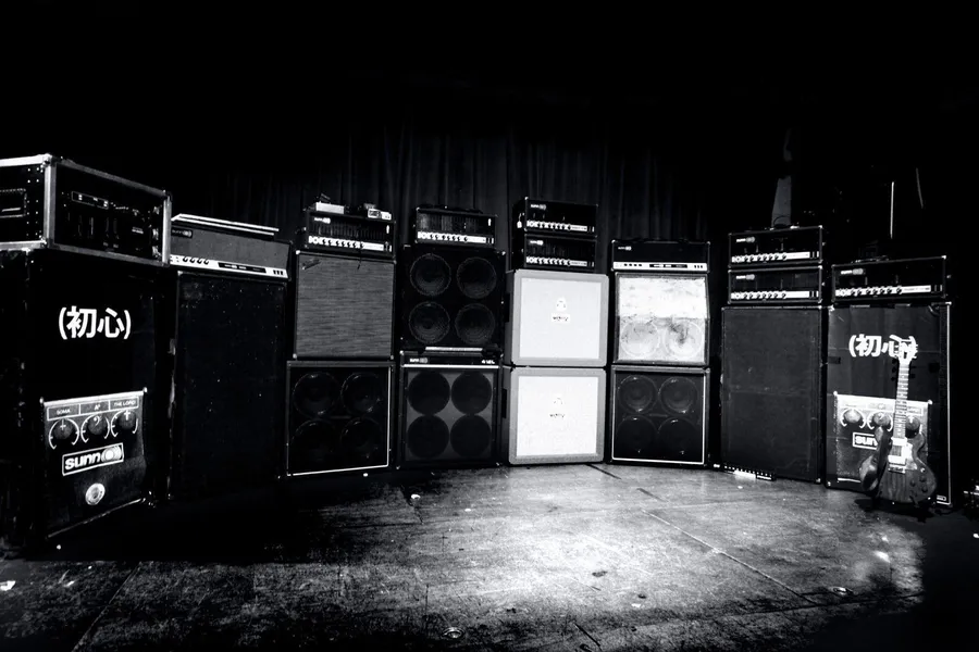 A Black And White Photo Of Several Amps In A Room Wallpaper