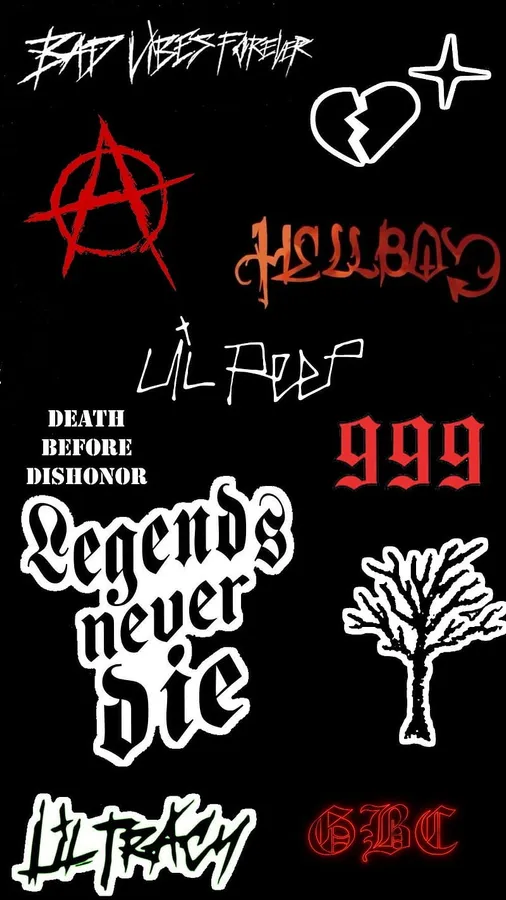 A Black And White Photo Of Various Stickers Wallpaper