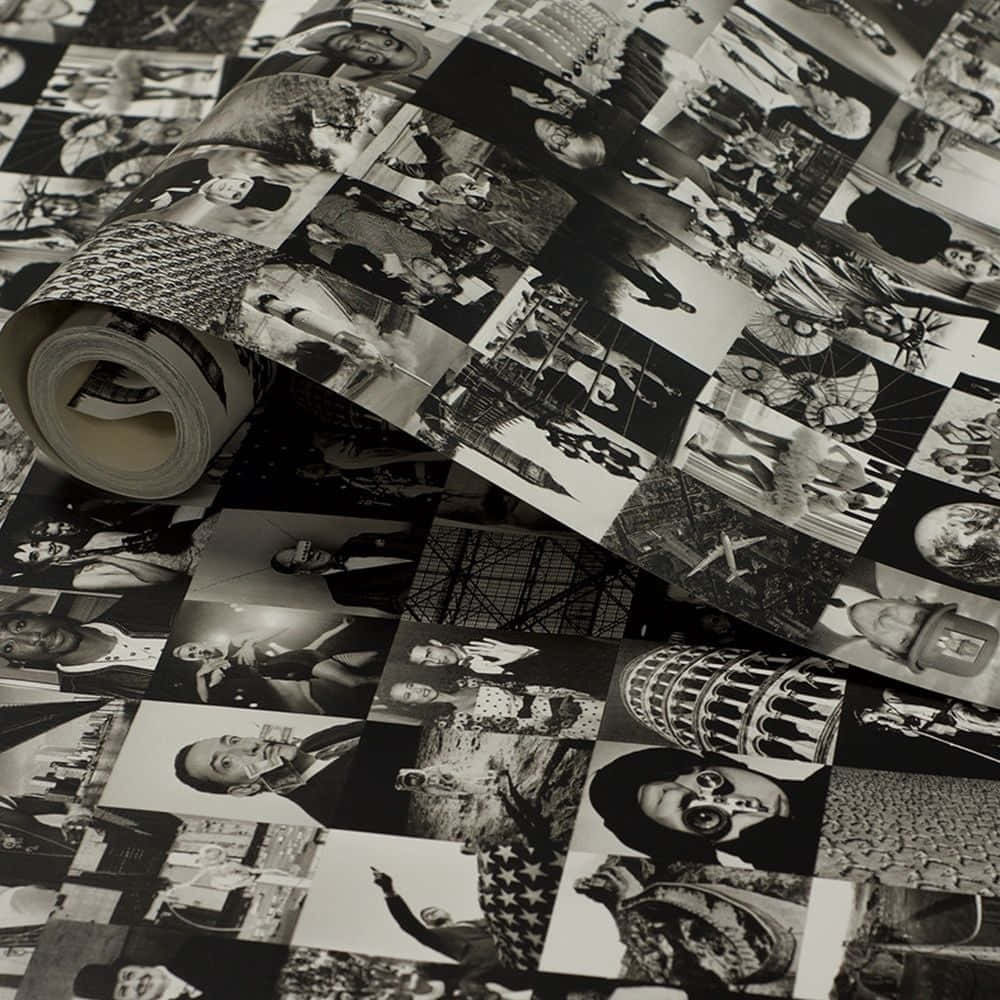 A Black And White Photo Paper With Many Pictures On It Wallpaper