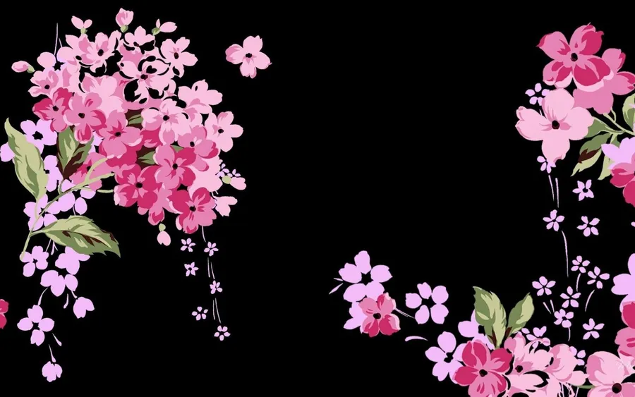 A Black Background With Pink Flowers On It Wallpaper