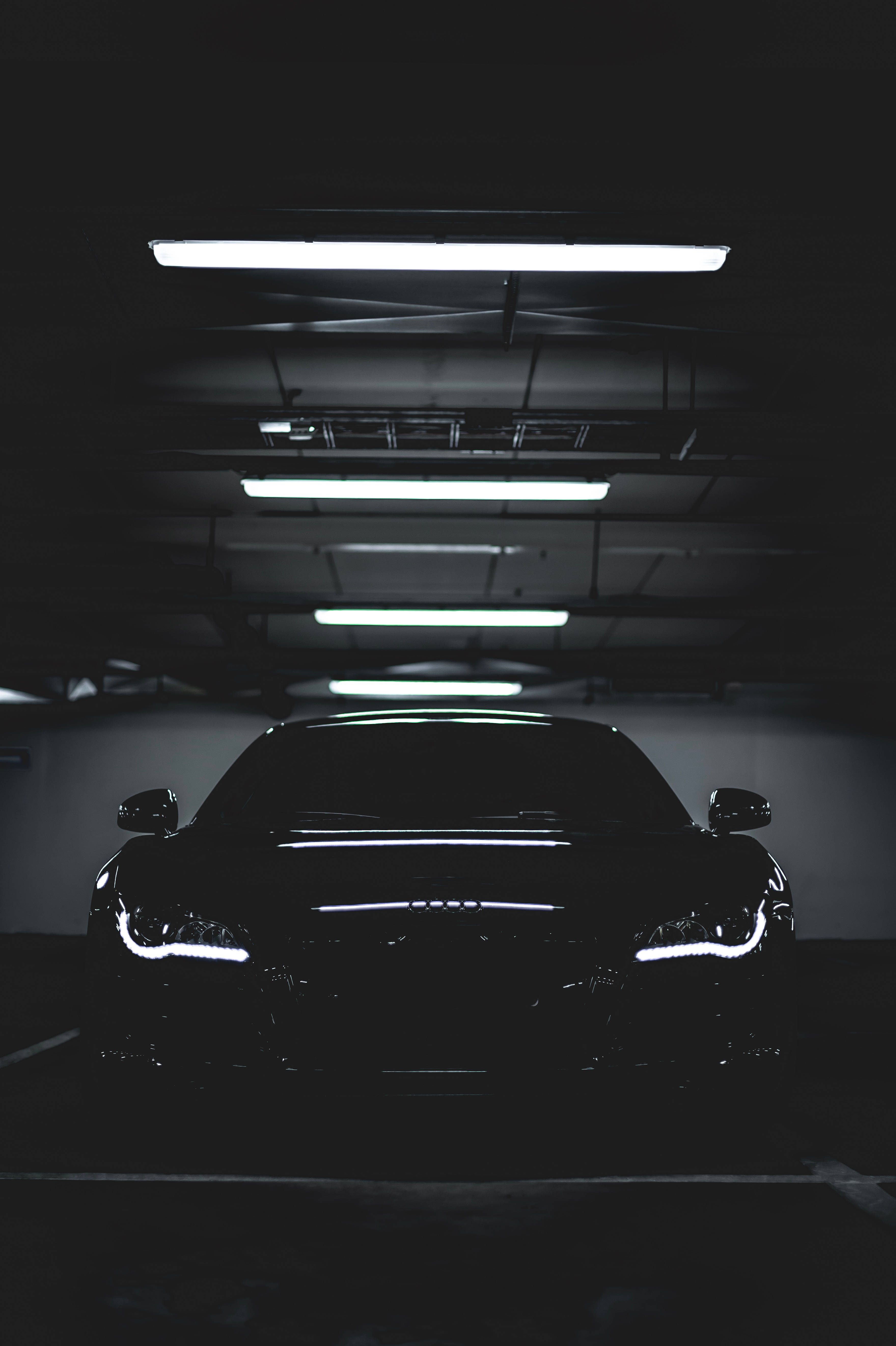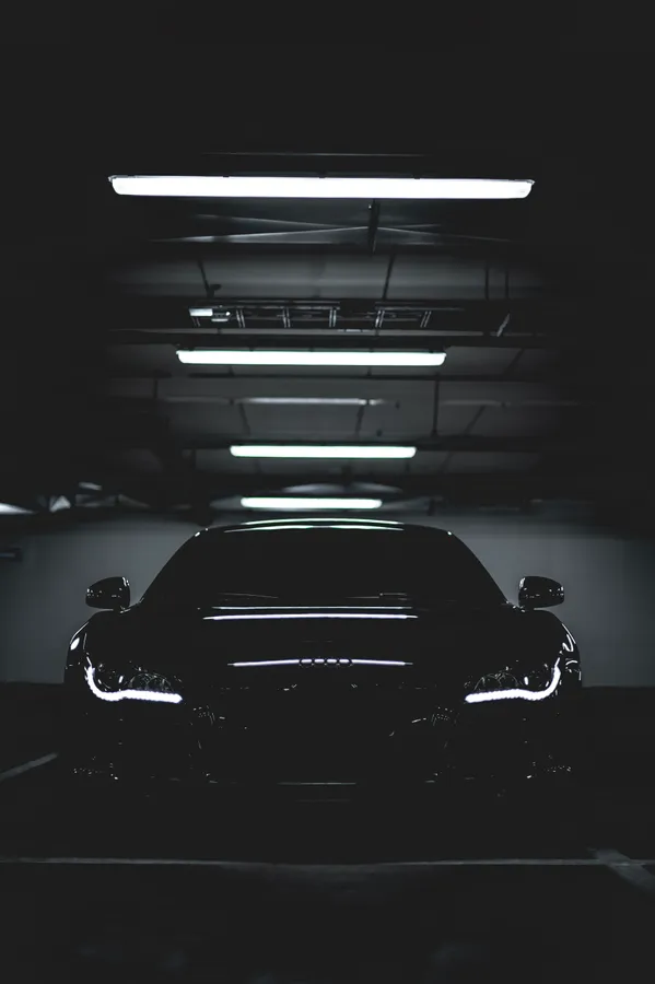 A Black Car In A Dark Parking Garage Wallpaper