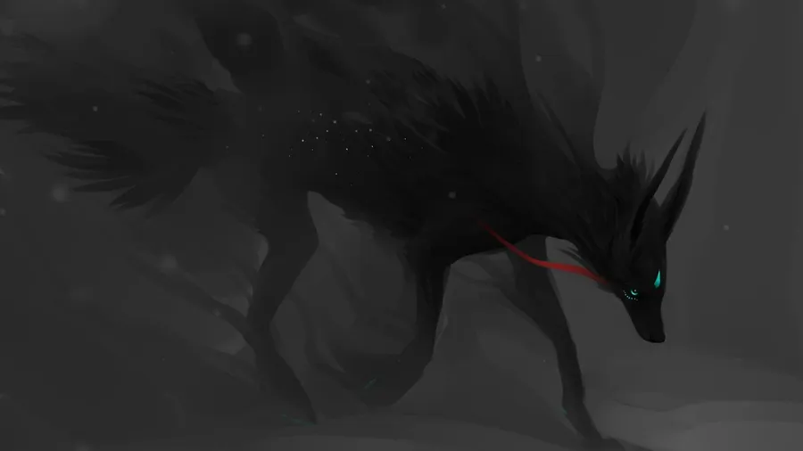 A Black Cartoon Fox Walks Through The Forest Wallpaper