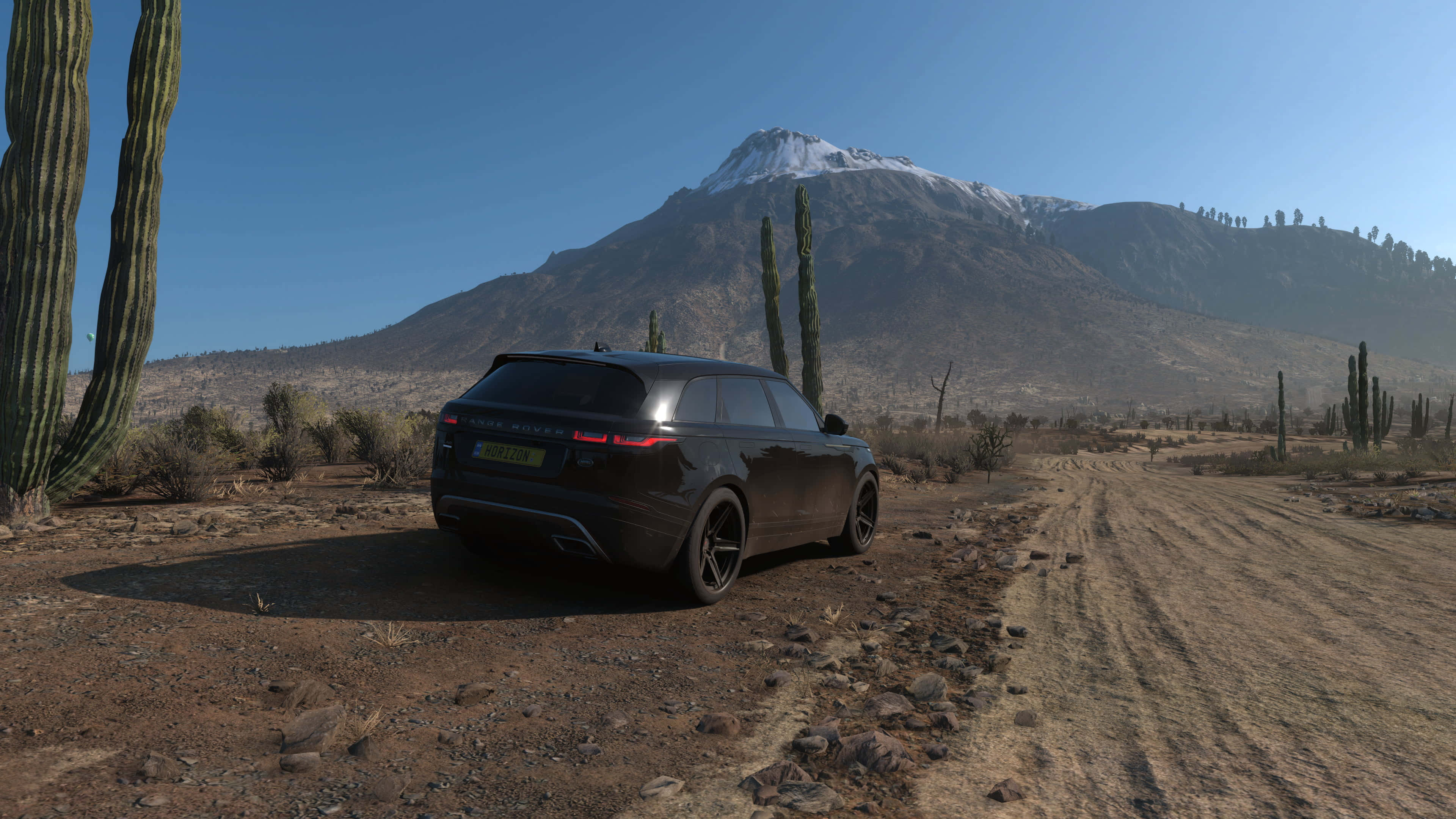 A Black Suv Is Parked On A Dirt Road Near A Mountain Wallpaper