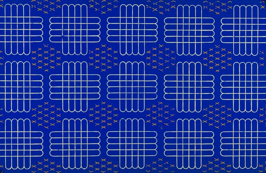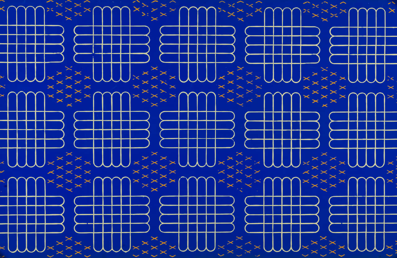 A Blue And Gold Geometric Pattern Wallpaper