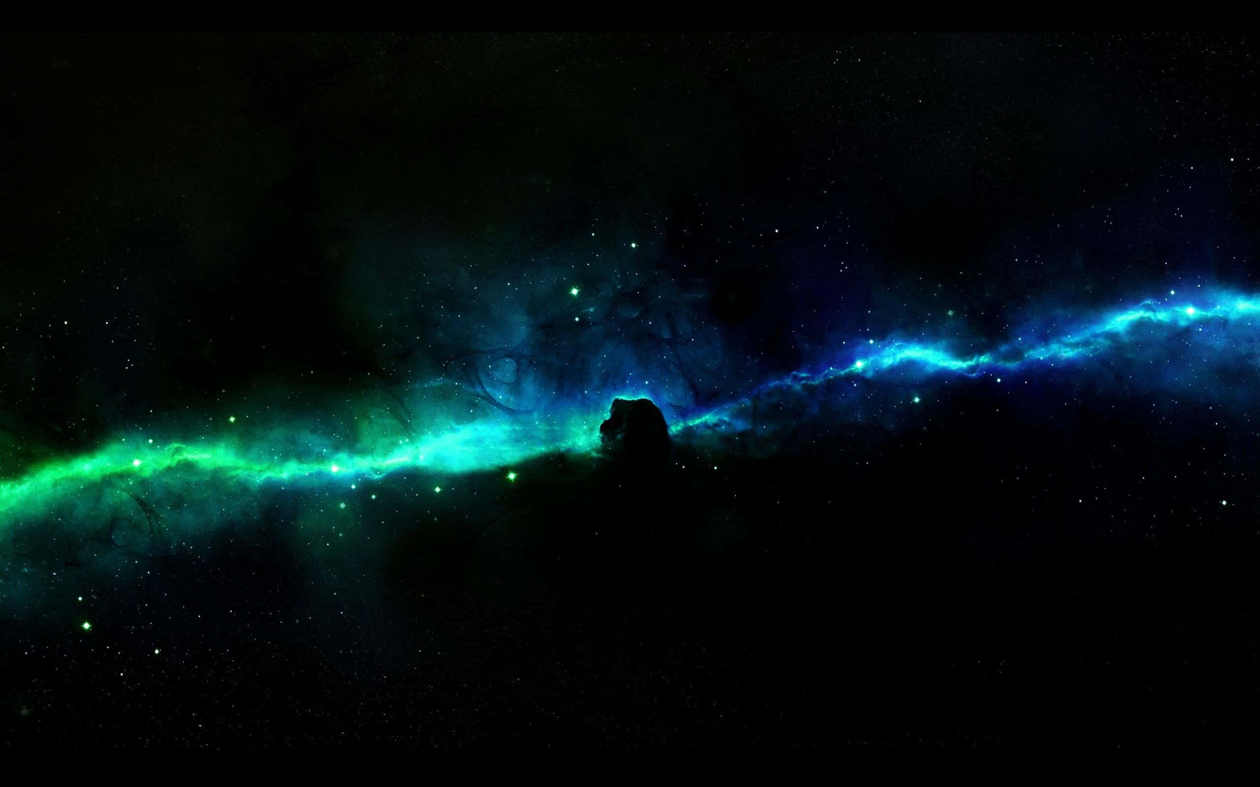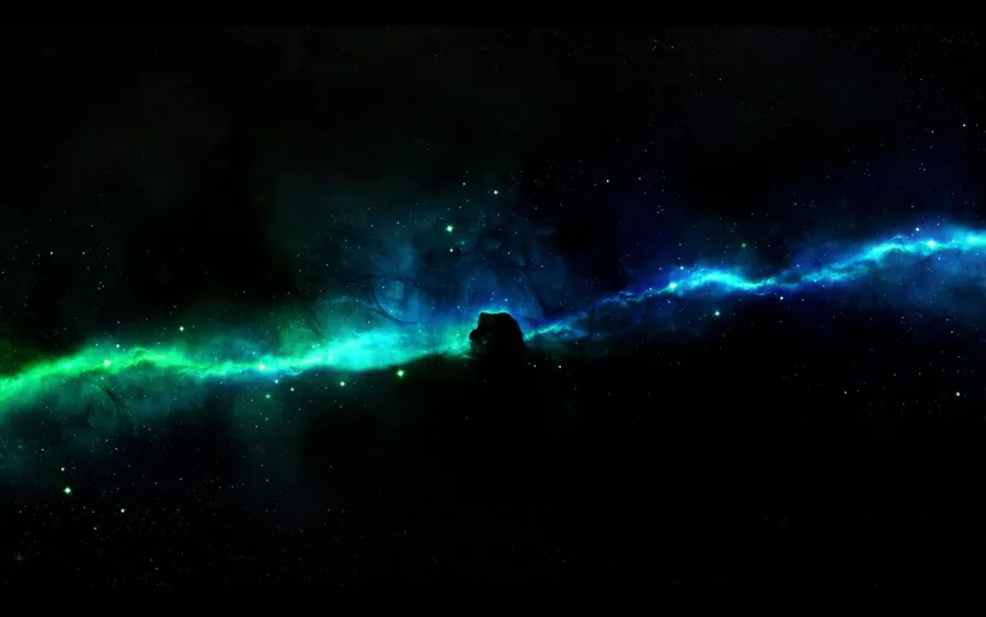 A Blue And Green Space With A Spaceship In The Background Wallpaper