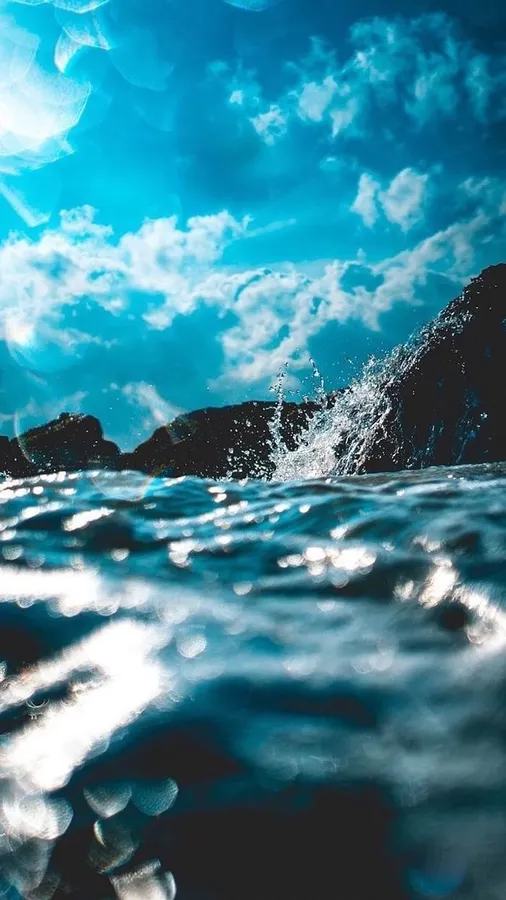 A Blue Sky With Clouds And Water Splashing Wallpaper