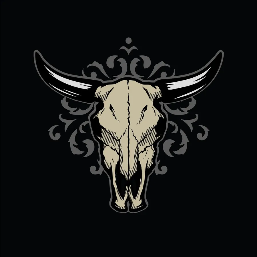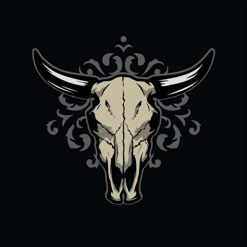 A Bull Skull With Horns On A Black Background Wallpaper