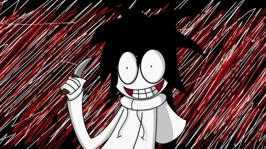 A Cartoon Character Holding A Knife In The Rain Wallpaper