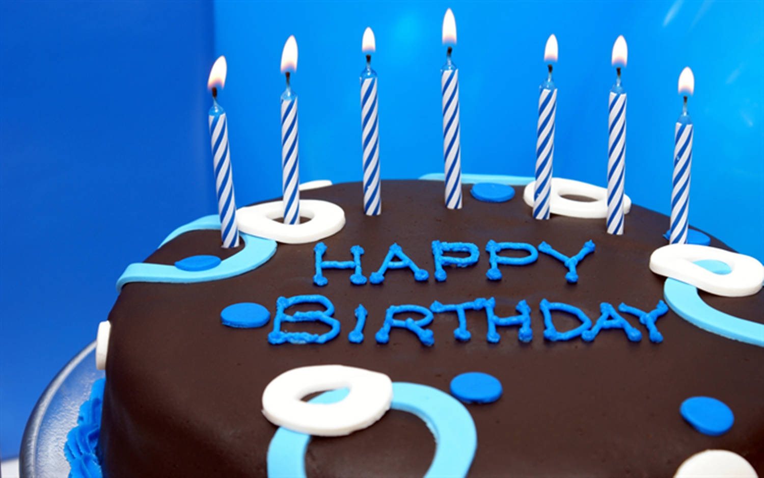 A Chocolate Birthday Cake With Sky-blue Candles Wallpaper
