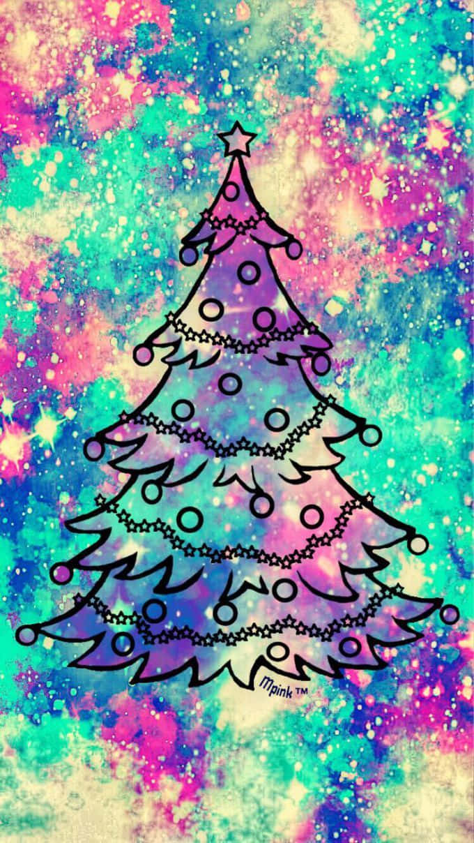 A Christmas Tree With Stars On A Colorful Background Wallpaper
