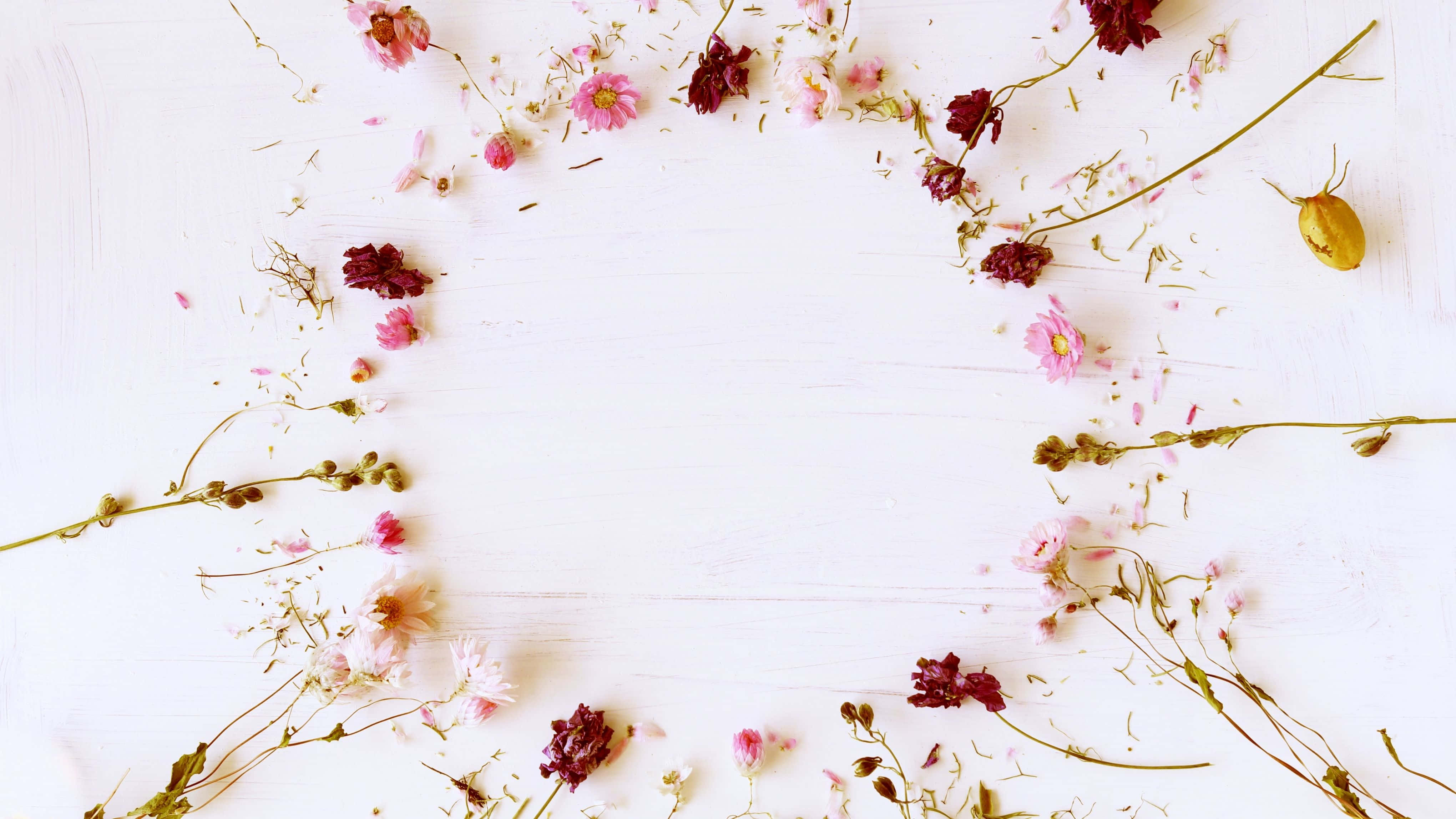 A Circle Of Dried Flowers On A White Background Wallpaper