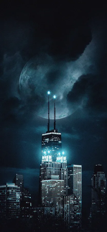 A City With A Moon And A Cityscape Wallpaper