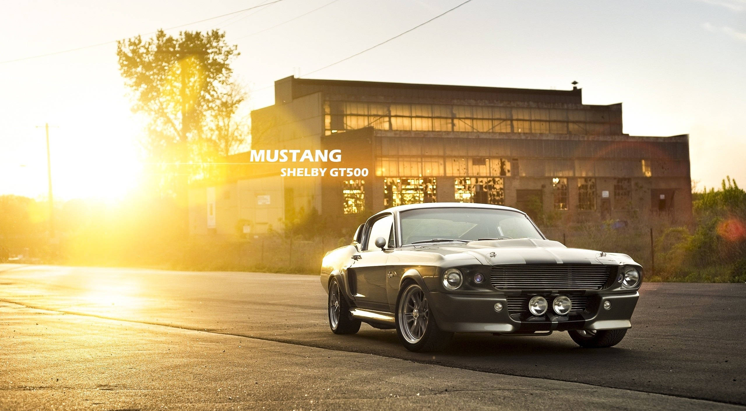 A Classic Mustang Is Parked In Front Of A Building Wallpaper