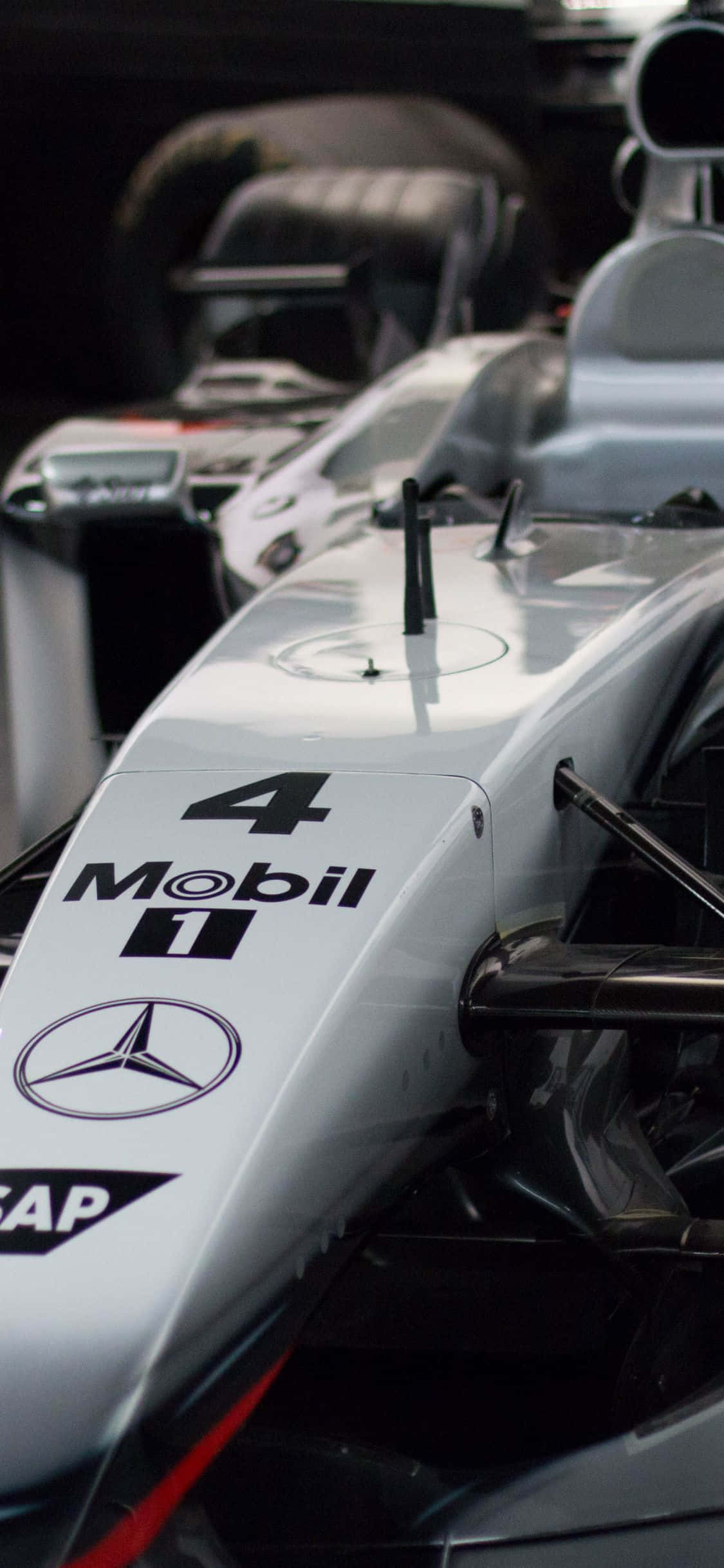 A Close Up Of A Mercedes F1 Car Wallpaper