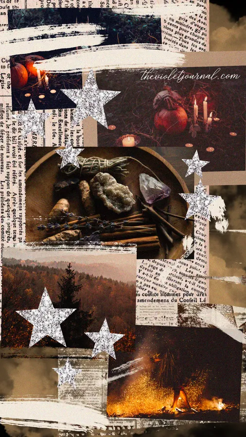 A Collage Of Images Of A Witch And A Candle Wallpaper