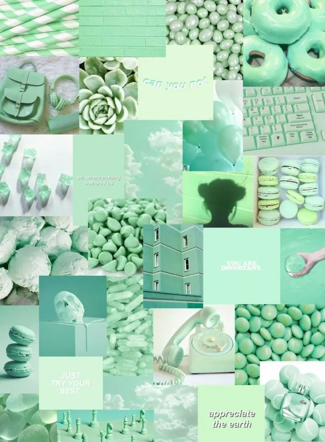 A Collage Of Mint Green And White Items Wallpaper