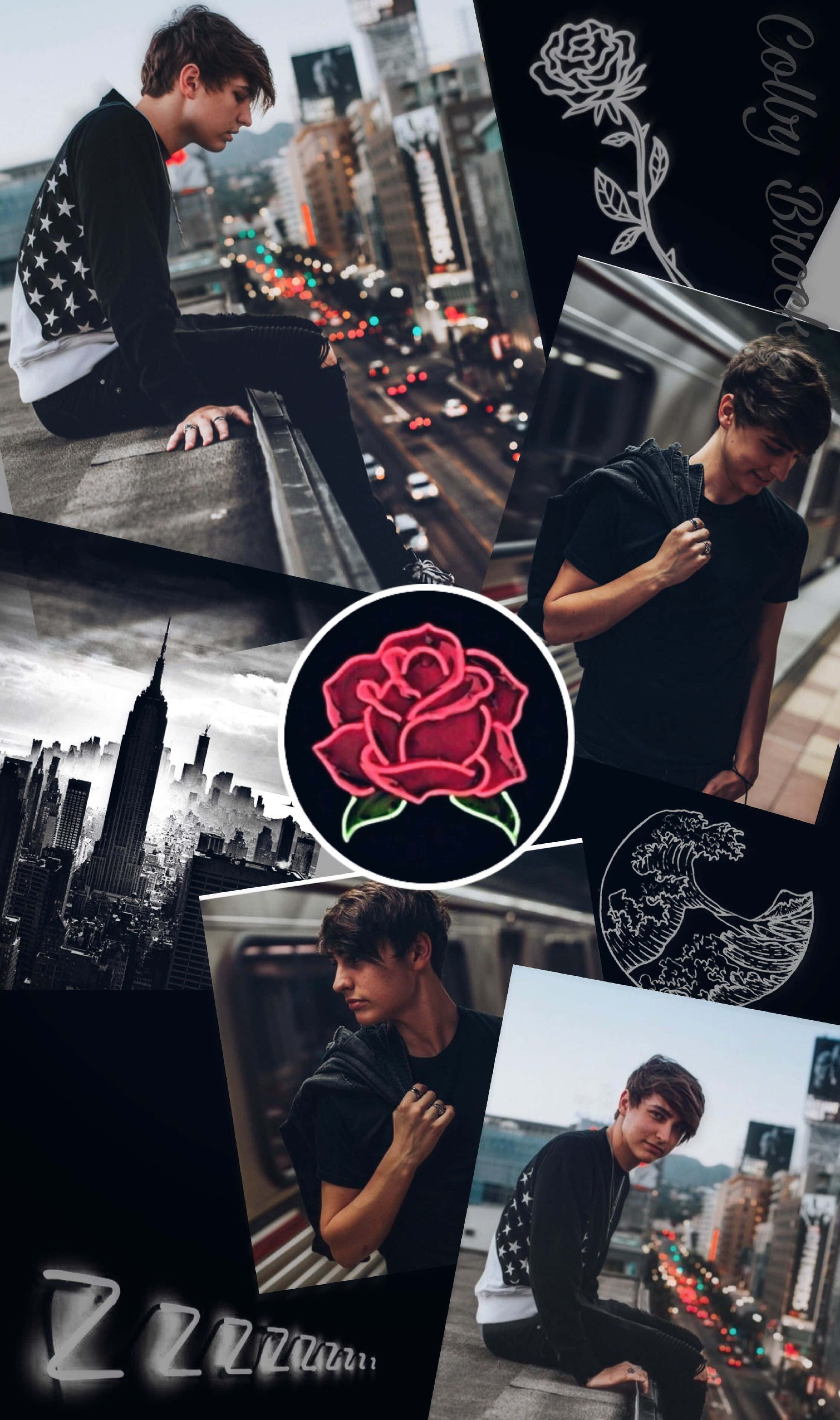 A Collage Of Photos Of A Man With A Rose Wallpaper