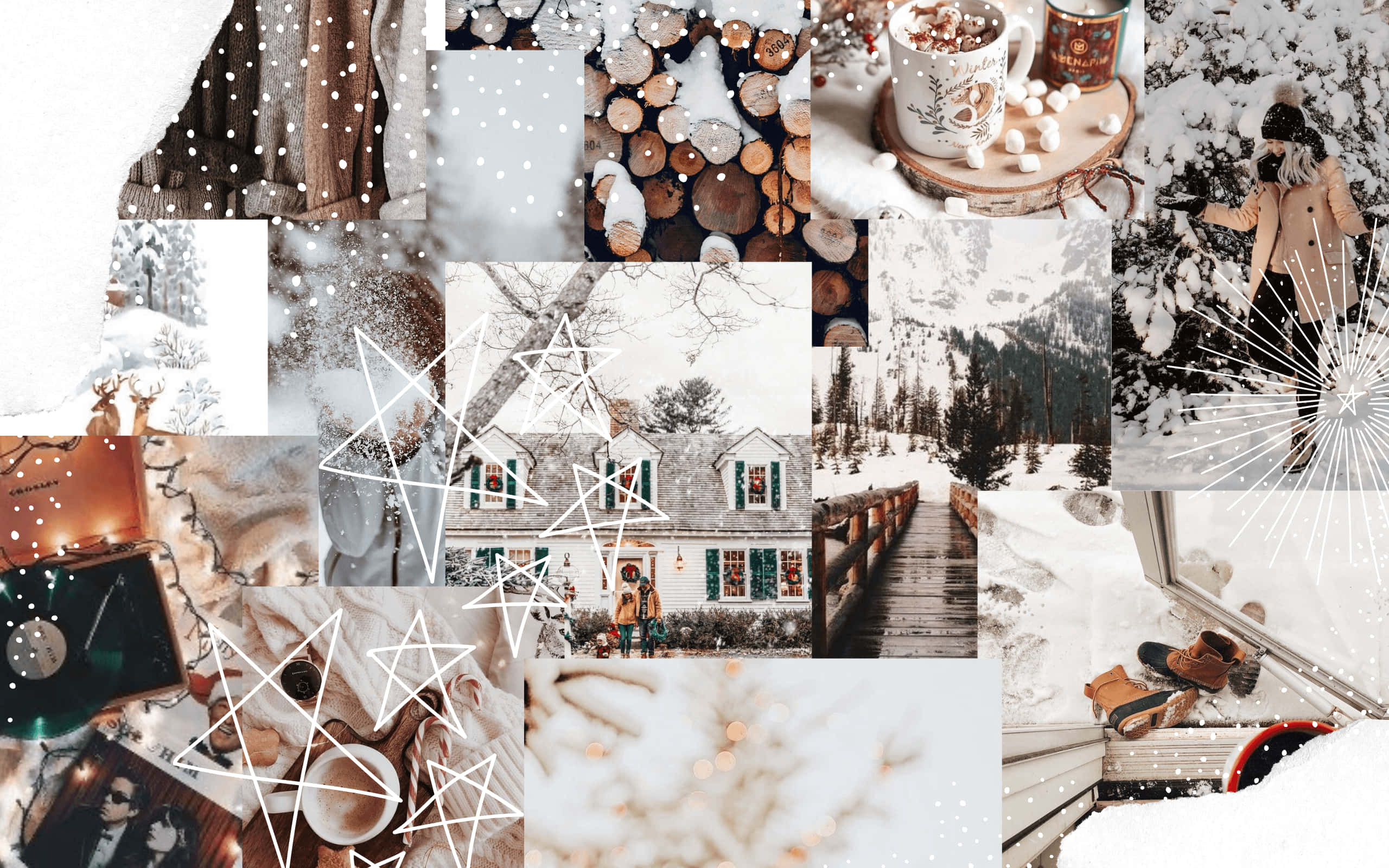 A Collage Of Photos With Snow And Snowflakes Wallpaper