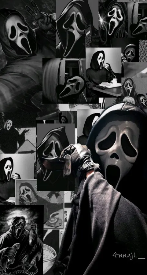 A Collage Of Pictures Of A Scream Mask Wallpaper