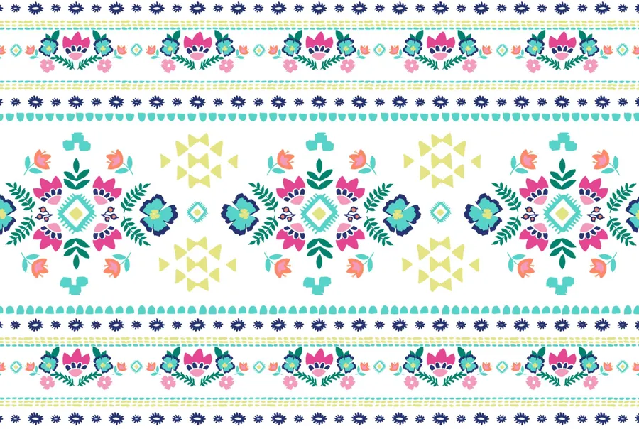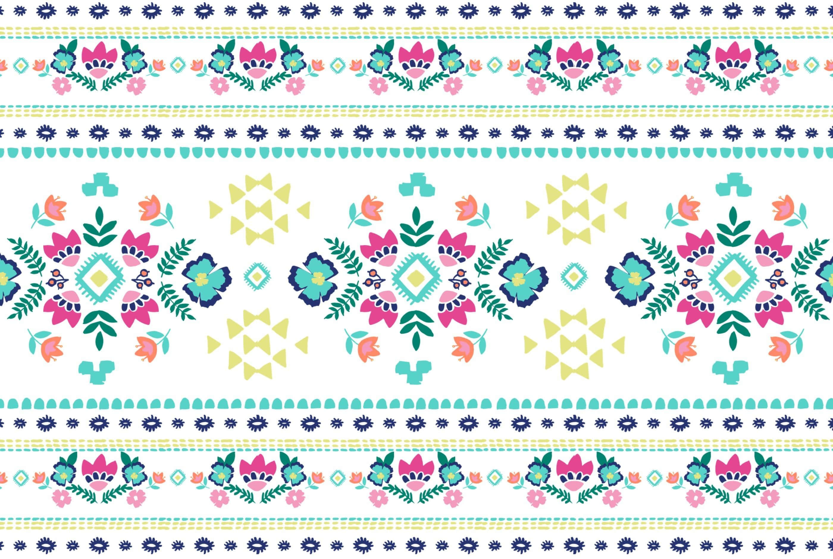 A Colorful Embroidered Pattern With Flowers And Leaves Wallpaper
