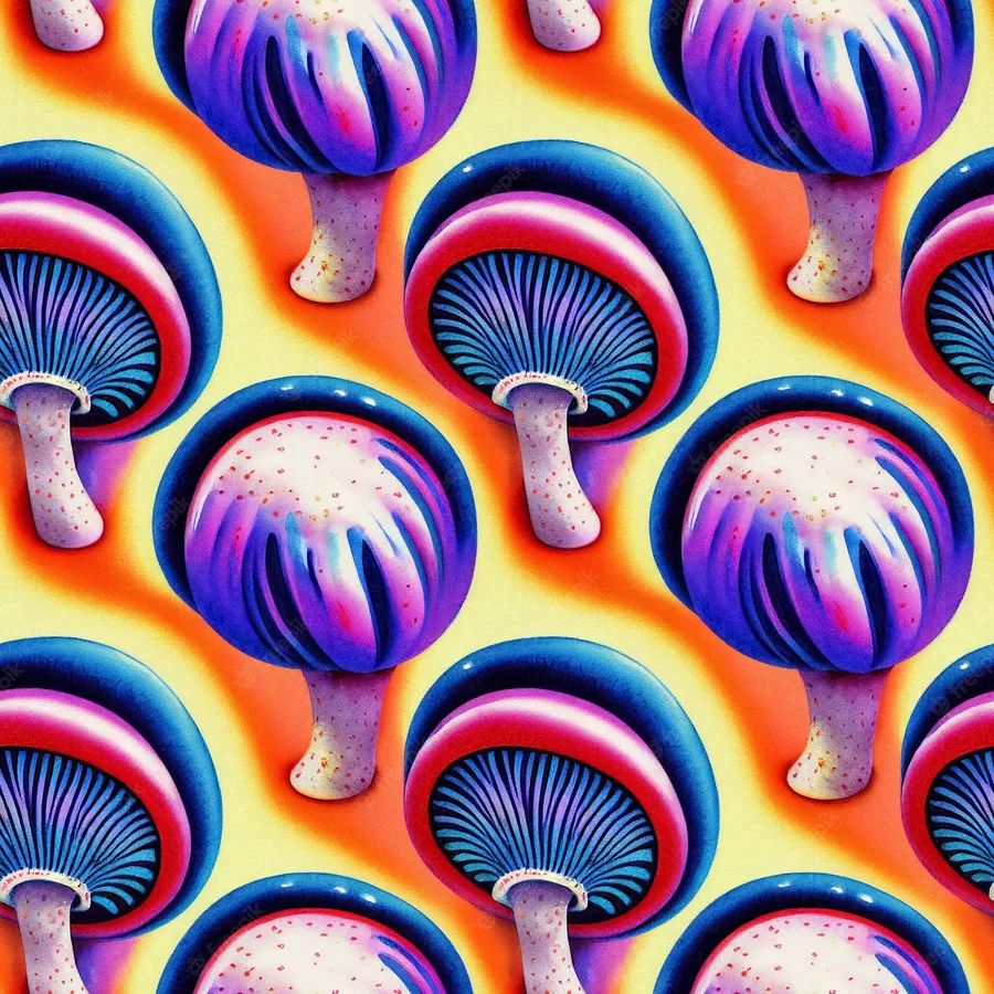 A Colorful Pattern Of Mushrooms On A Yellow Background Wallpaper