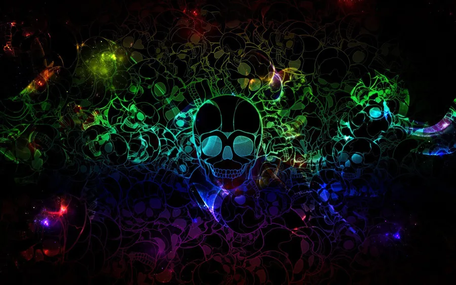 A Colorful Skull With Glowing Lights On It Wallpaper
