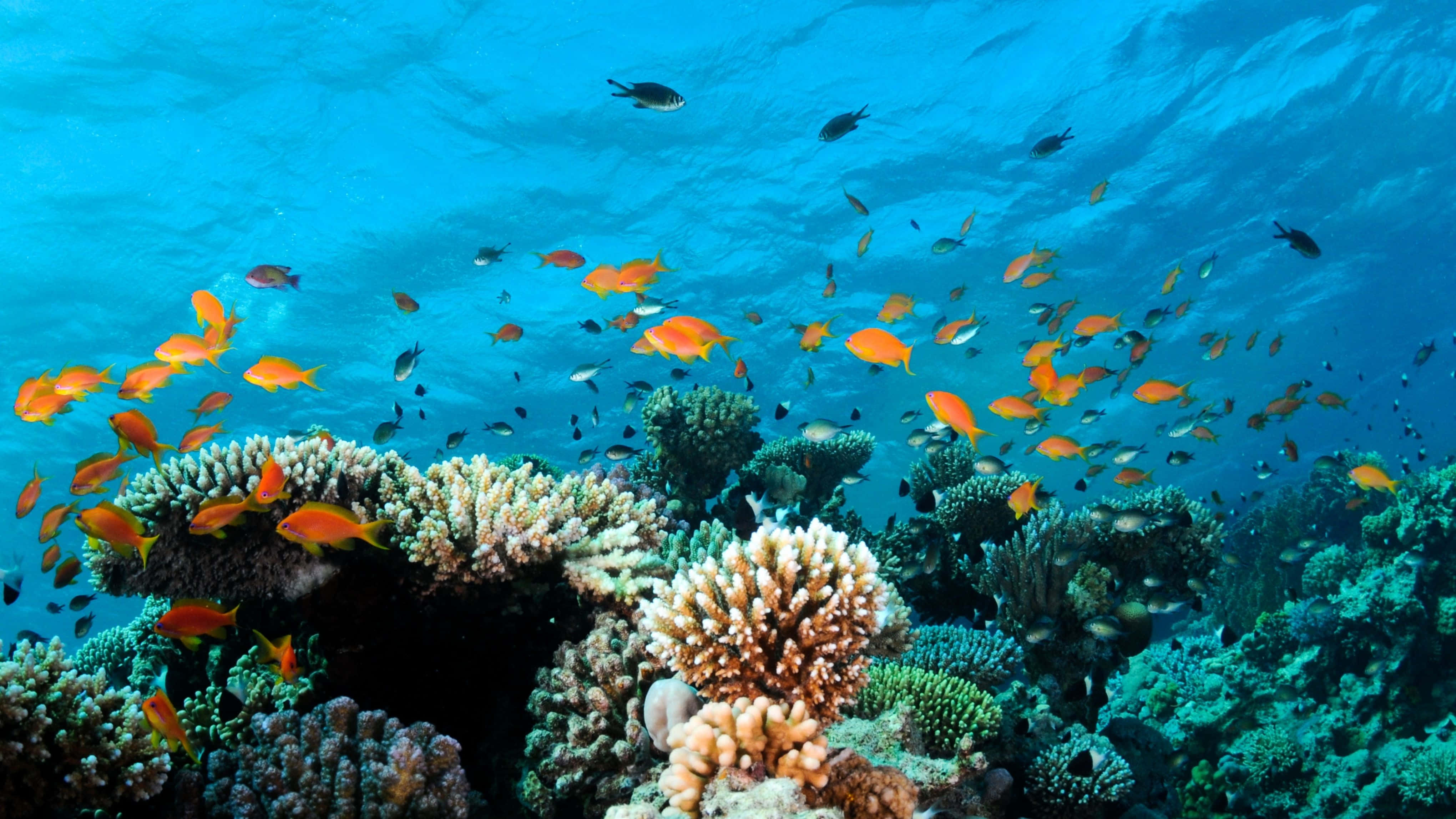 A Coral Reef With Many Fish Swimming Around Wallpaper