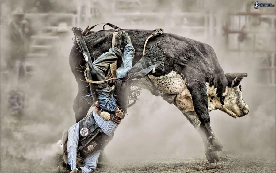 A Cowboy Falling Off A Bull In A Rodeo Wallpaper
