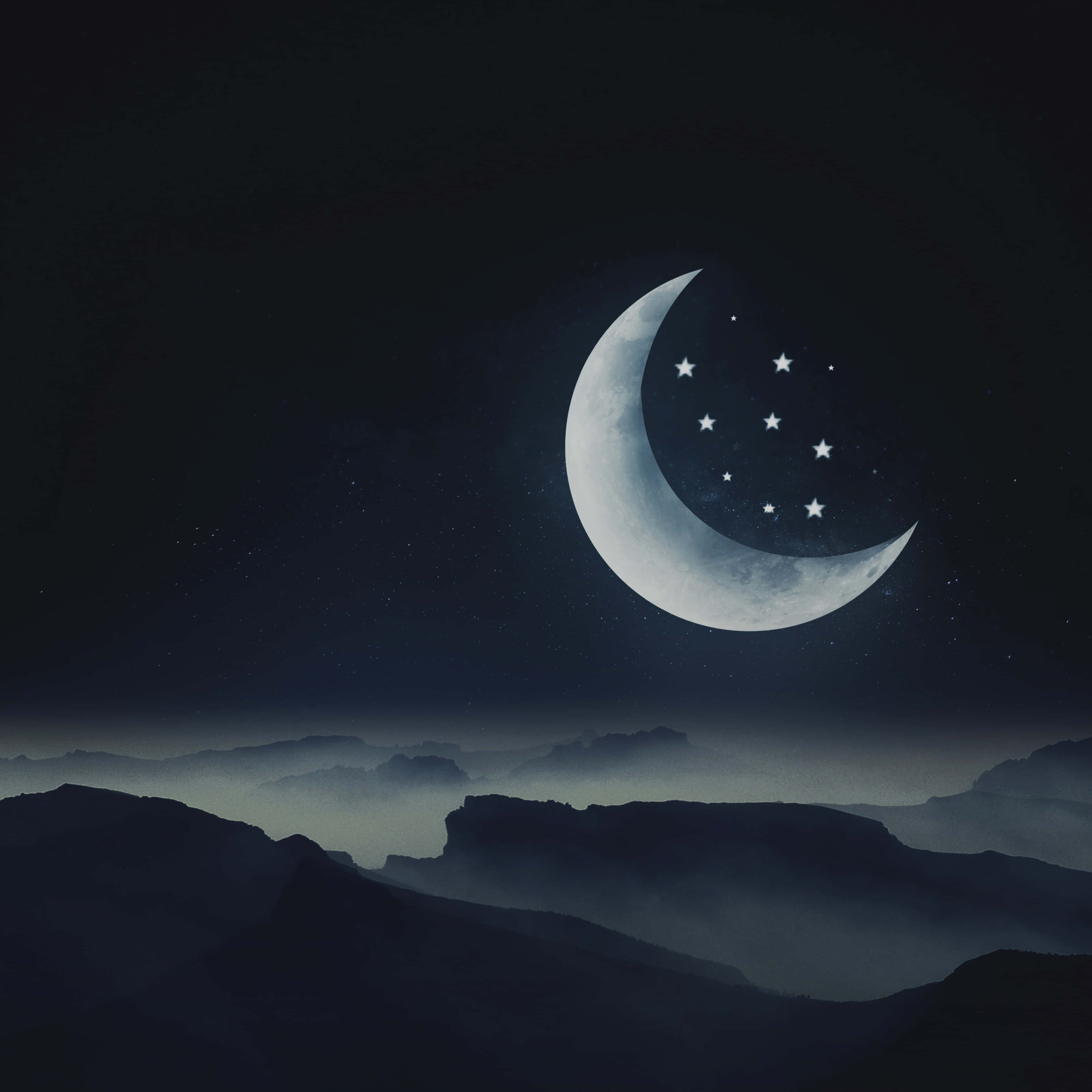 A Crescent And Stars In The Night Sky Wallpaper