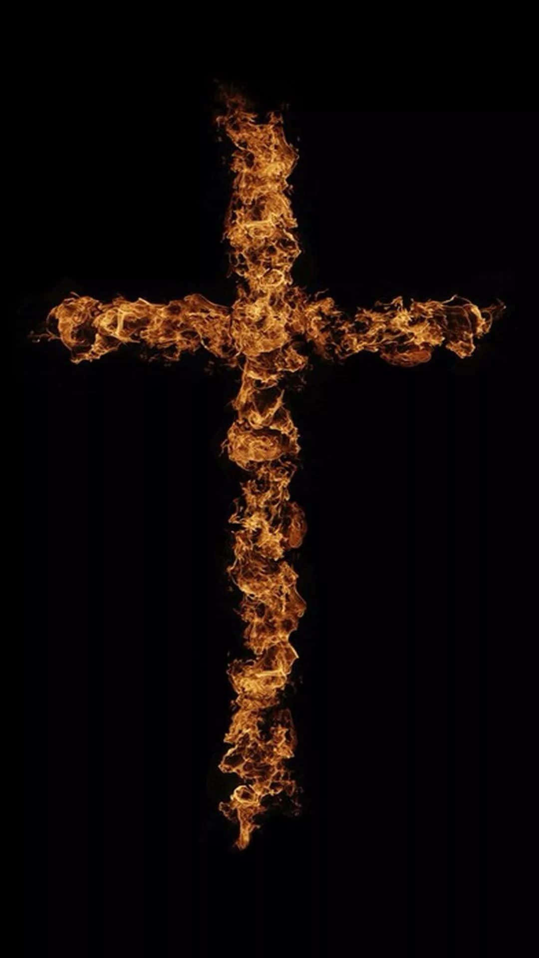 A Cross Made Of Fire On A Black Background Wallpaper