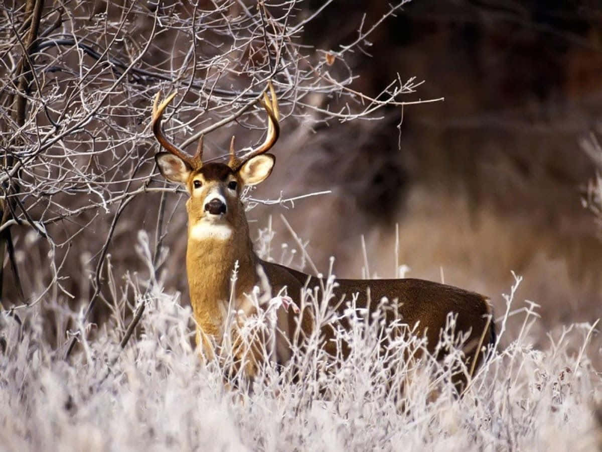 A Deer Stands In A Field With Frosty Grass Wallpaper