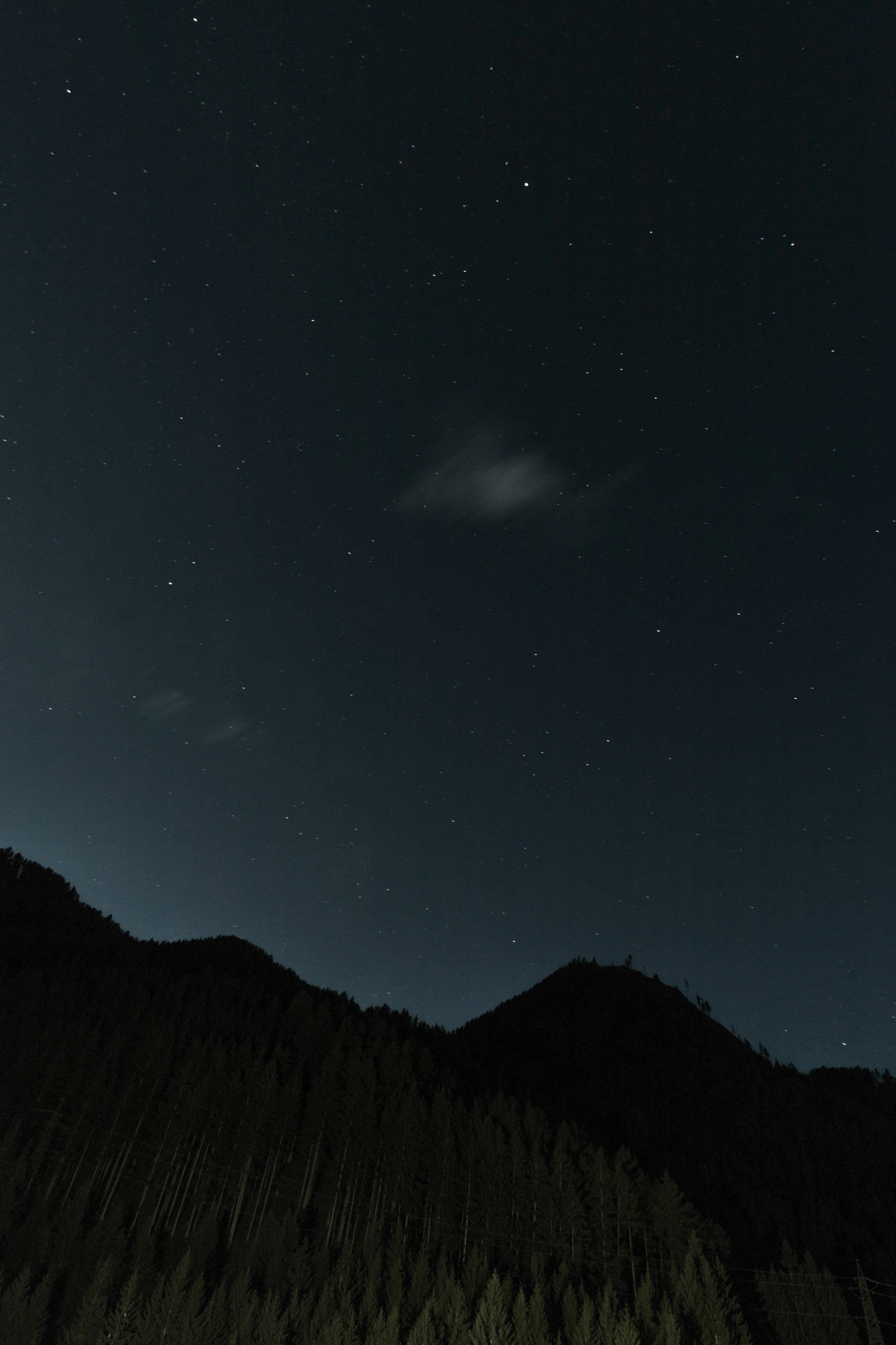 A Dimly Lit, Star-filled Sky Above A Stunning Mountain Silhouette. Wallpaper