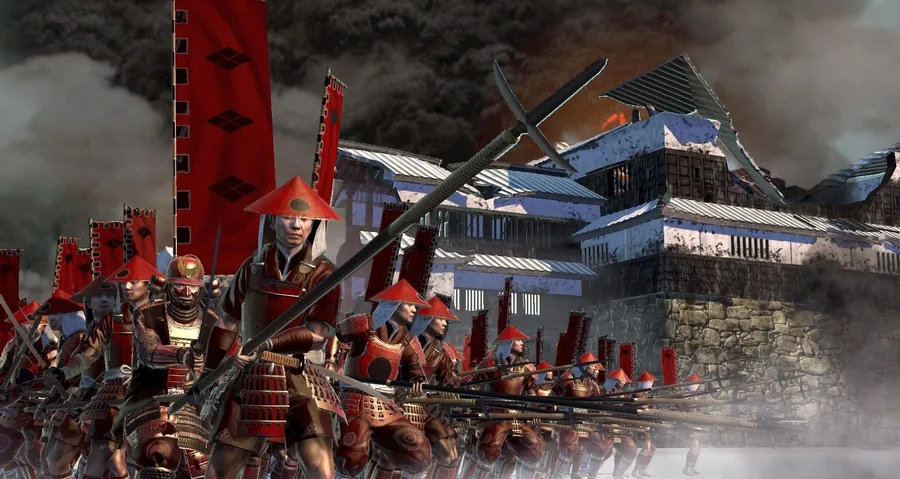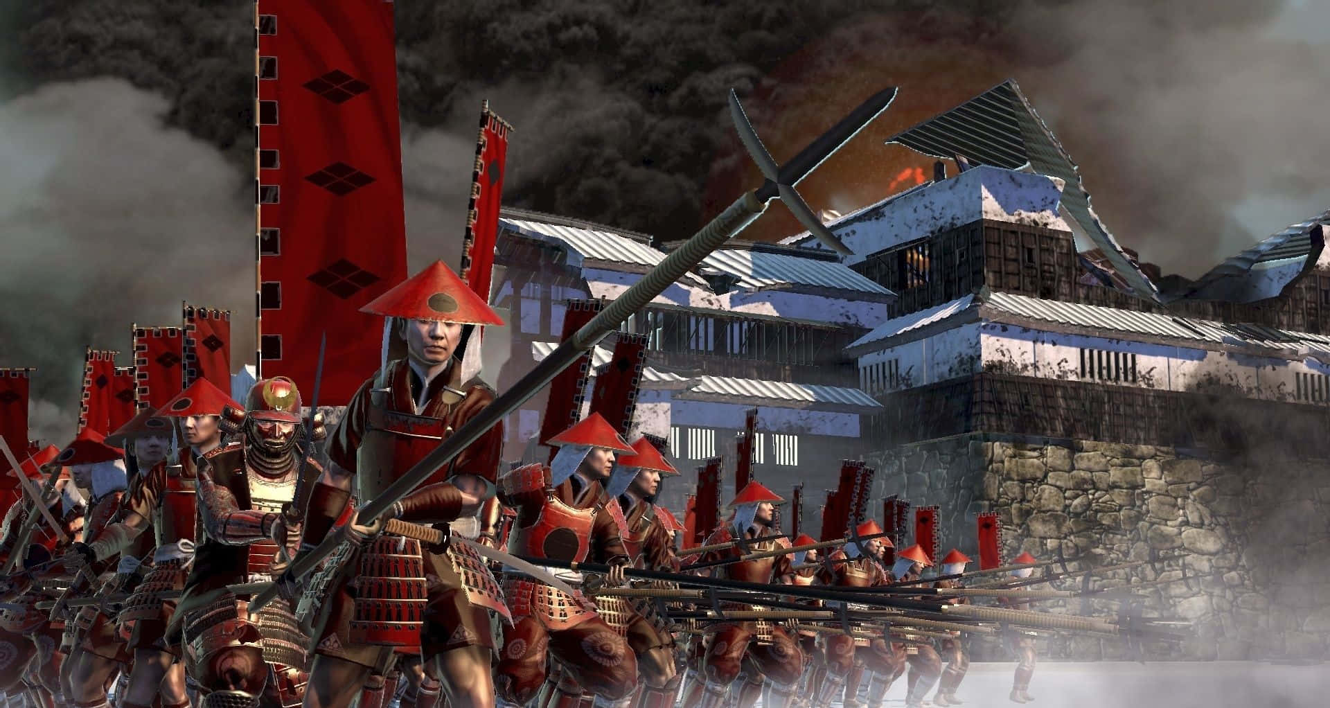 A Dramatic Shogun Dressed For Battle In Traditional Japanese Armor Wallpaper
