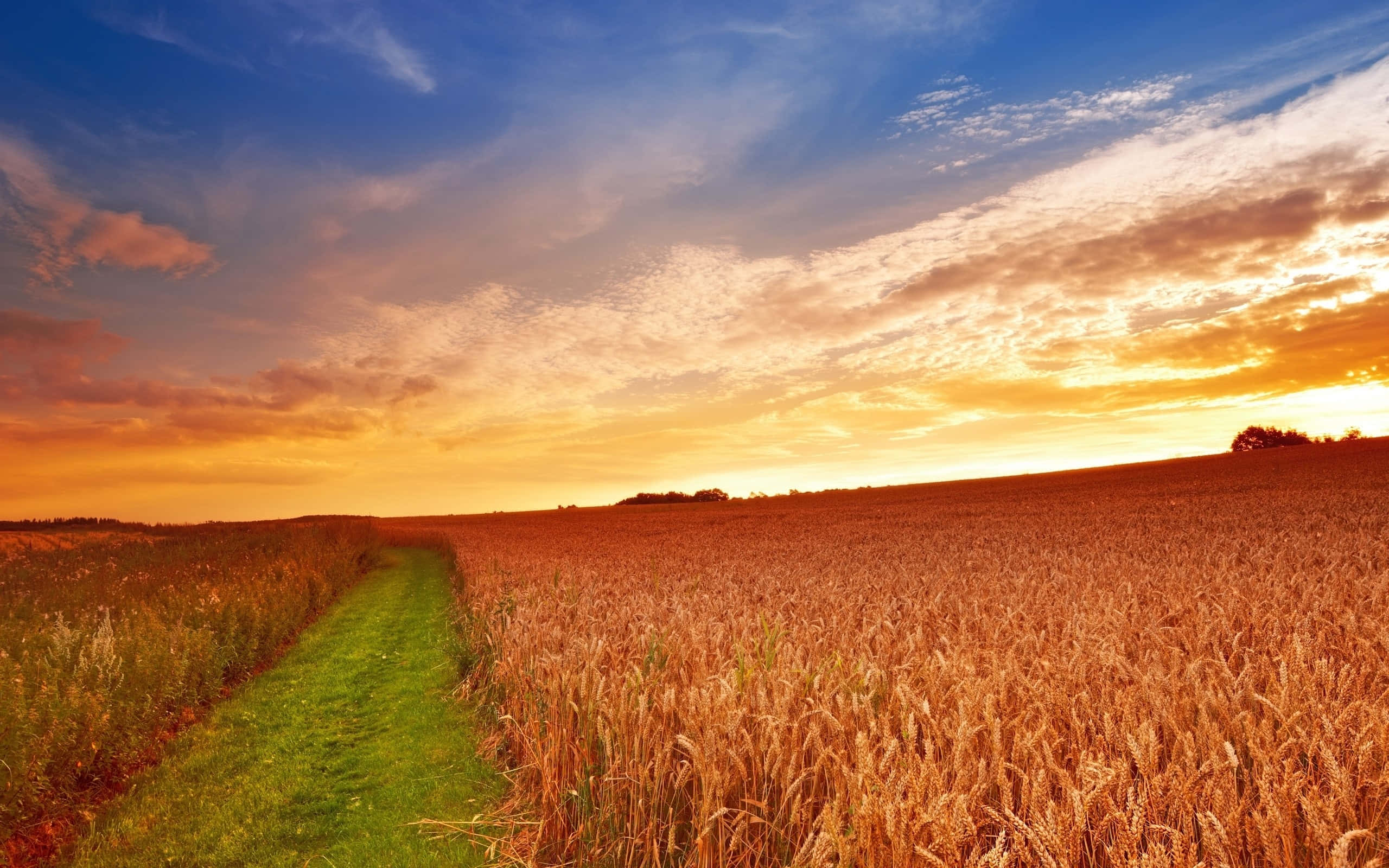 A Field Of Wheat With A Sunset Behind It Wallpaper