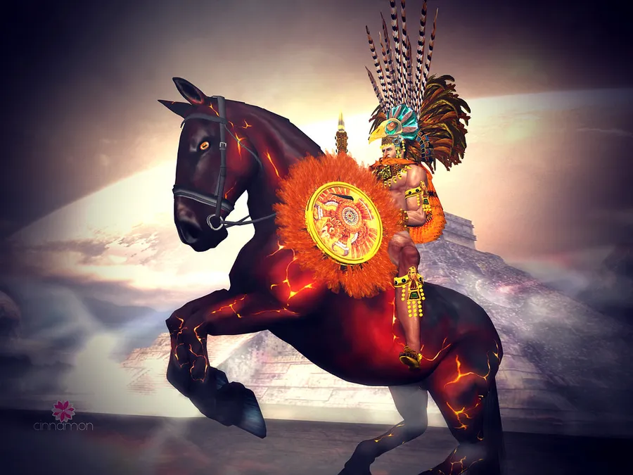 A Fierce Aztec Warrior Dressed In Traditional Battle Attire. Wallpaper