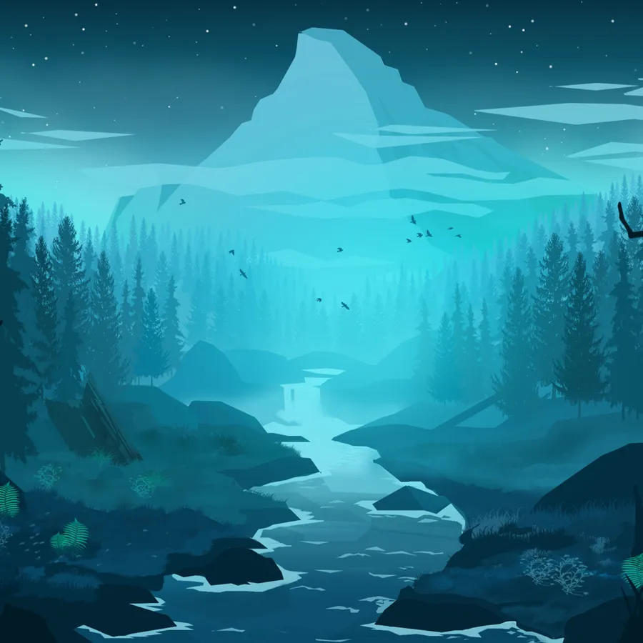 A Forest With A River And Trees At Night Wallpaper