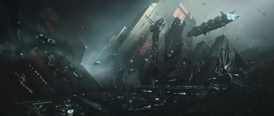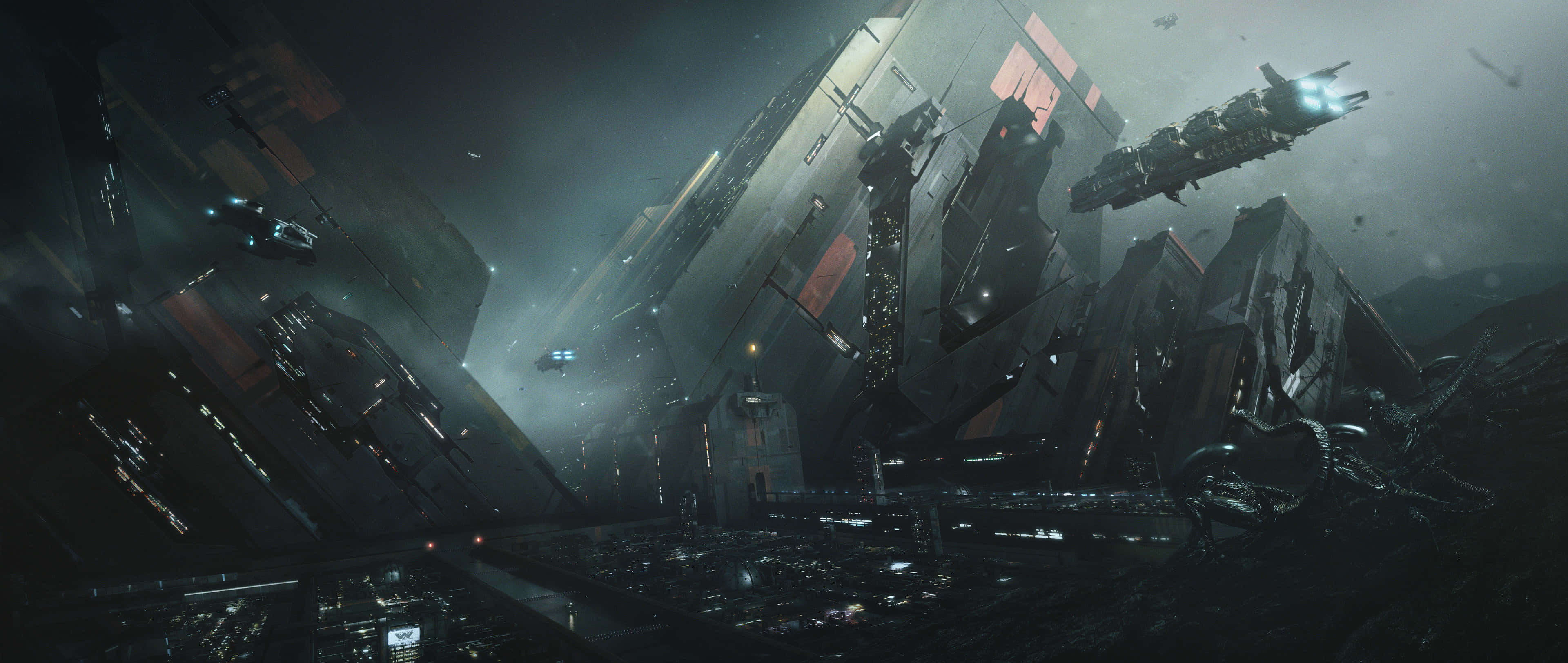 A Futuristic City With A Large Spaceship Wallpaper