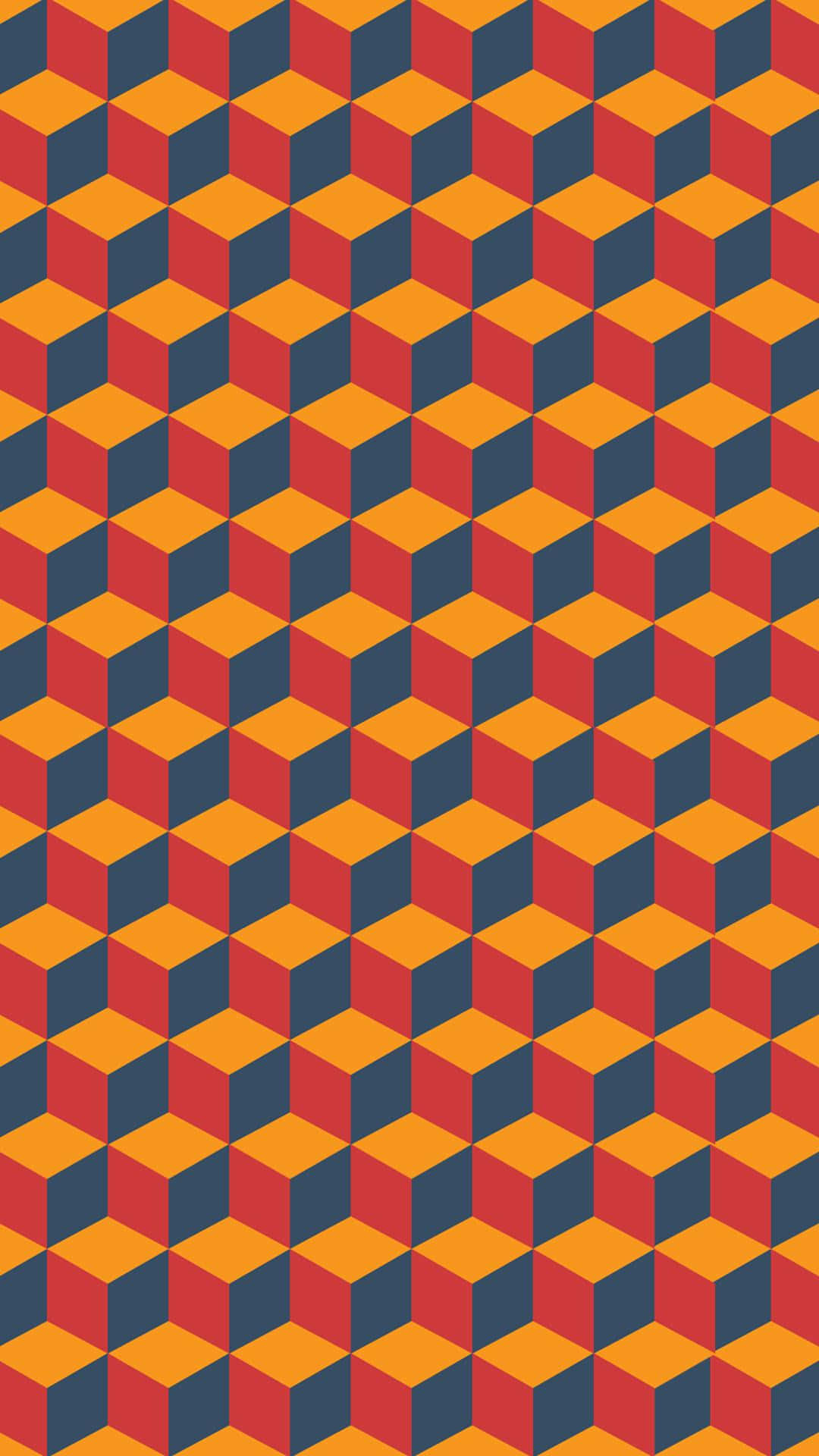 A Geometric Pattern With Orange And Blue Squares Wallpaper