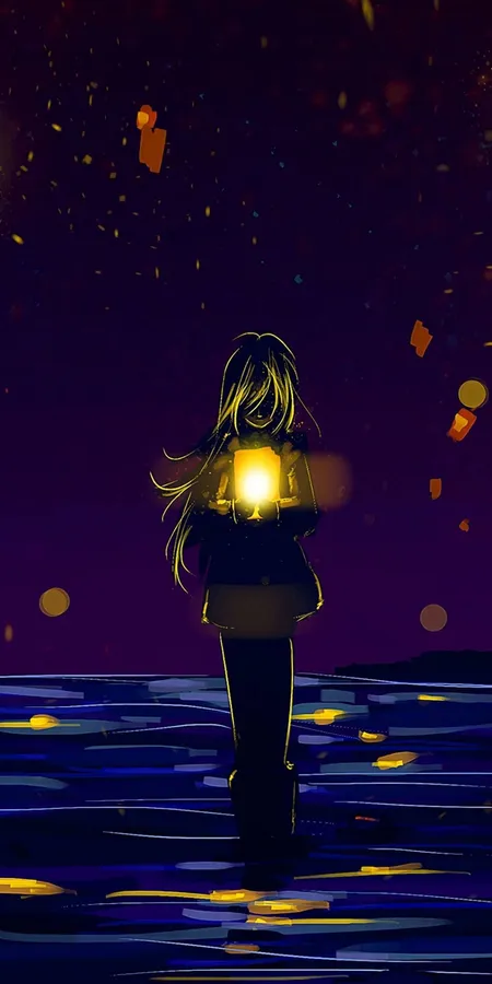 A Girl Holding A Flashlight In The Water Wallpaper
