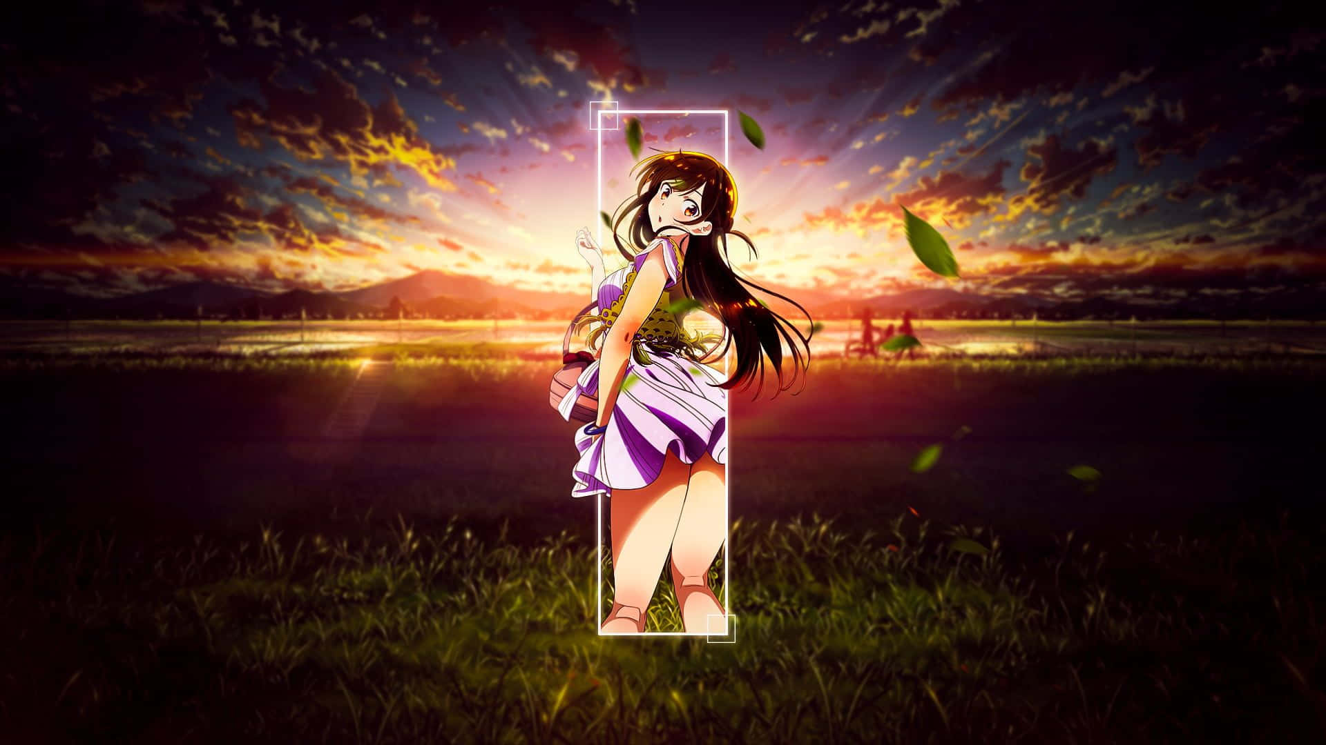 A Girl In A Dress Standing In A Field Wallpaper